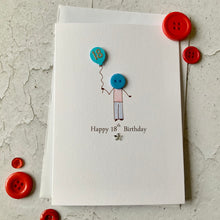 This cute button person is holding a balloon and is perfect for sending your birthday wishes to someone who is turning 18