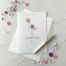 This cute button person is holding a balloon and is perfect for sending your special 30th birthday wishes.