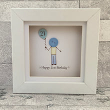 This cute little frame is a lovely keepsake for a 21st Birthday. It features one of my popular button people with a 21 balloon.
