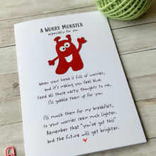 Sometimes life is full of worries and no matter how hard you try to stop worrying, they can take over your life, if you know someone that would benefit from a Worry Monster then why not send them this card?
